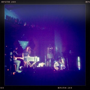 To get the evening started Washed Out, much buzzed about electronic artist out of Georgia, was tasked with getting people at the packed Sanctuary show in the Beach House spirit. It is rare that I find an one man electro act something worth watching – usually I’m most happy dancing like a crazy person to their music – however, Ernest Greene dancing around his keyboards, laptop and other odds and ends was plenty intriguing. He mentioned it was his first seated show and it was immediately apparent why. Washed Out makes music that requires dancing; to not move to his effect laden loops would be almost disrespectful.